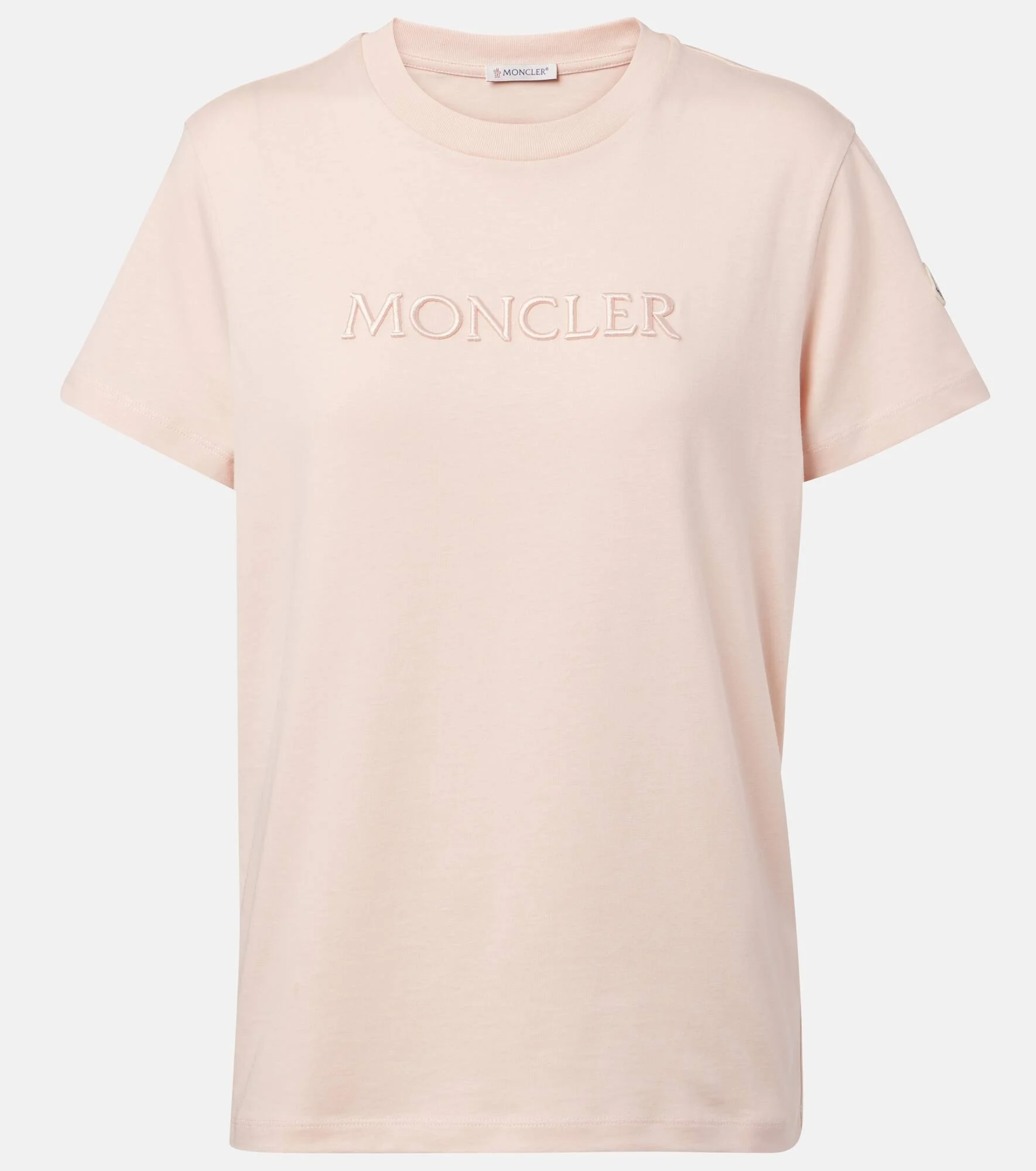 Crafted from pure cotton, this T-shirt from Moncler showcases the brand's name lettered across the chest. This design is cut to a straight silhouette. Product Details - Material: 100% cotton - Care instructions: machine wash at 30 degrees - Made in Turkey - Designer color name: Pink - Item color: pink - Item number: P01068182 Size & Fit - True to size - Straight fit - Slightly stretchy fabric - Falls to the hip - The model seen in the picture is 178cm-5'10" and wearing a size XS
