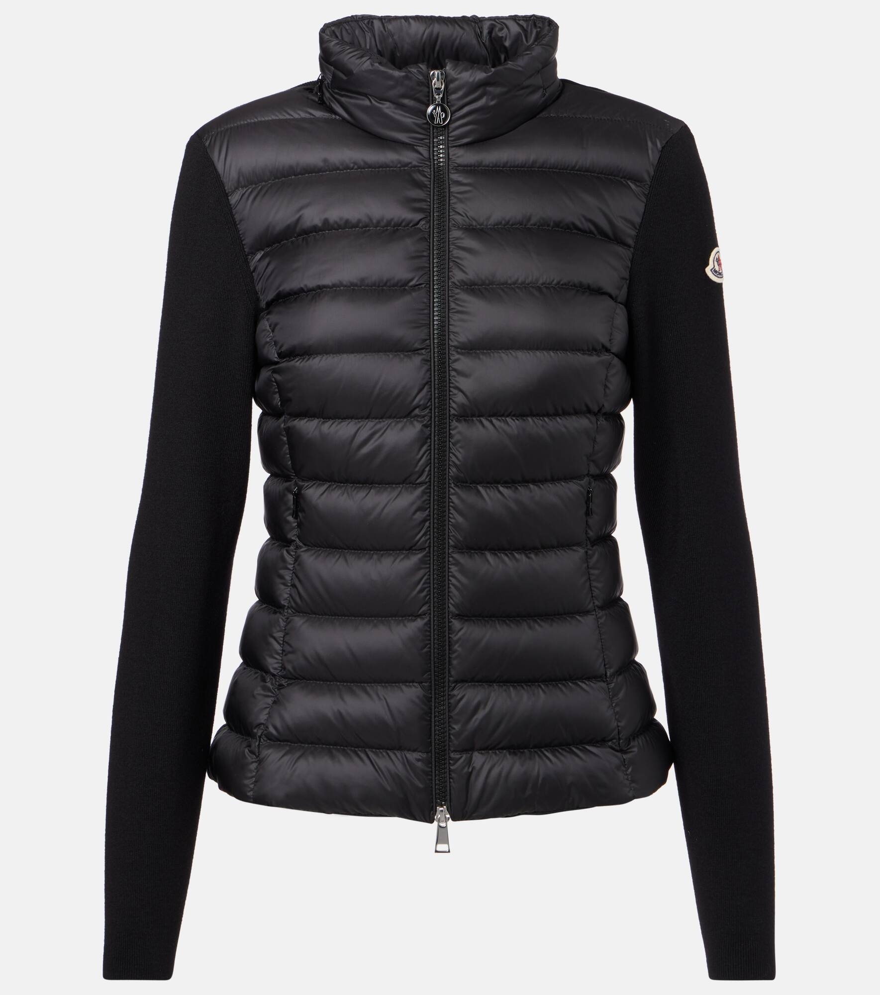 This down jacket features a concealed hood and cinched waist and showcases the brand's logo on an embossed arm patch. Exclusively sourced from DIST-certified suppliers, all Moncler down is derived from farmed geese as a byproduct of the food industry. Product Details - Material: 100% polyamide - Care instructions: dry clean - Made in Tunisia - Designer color name: Black - Item color: black - Material II: 95% wool, 5% polyester - Lining: 100% polyamide - Filling: 90% down, 10% feathers - Contains non-textile parts of animal origin - Concealed hood - Item number: P01068176 Size & Fit - True to size - Cinched waist - Partly stretchy fabric - Falls to the hip - The model seen in the picture is 178cm-5'10" and wearing a size XS