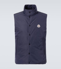 This Moncler down vest comes with a logo patch on the chest and a high neckline for insulation. Exclusively sourced from DIST-certified suppliers, all Moncler down is derived from farmed geese as a byproduct of the food industry. Product Details - Material: 100% polyester - Care instructions: hand wash - Made in Moldova - Designer color name: English Blue - Item color: blue - Lining: 100% polyamide - Filling: 90% down, 10% feathers - Contains non-textile parts of animal origin - Closure: two-way zipped front with snap-button fastenings - Pockets: zipped pockets, internal pocket - Item number: P01068426 Size & Fit - True to size - Straight fit - Non-stretchy fabric - Falls to the hip - Height of model is 192cm-75.5" and wears a size 3