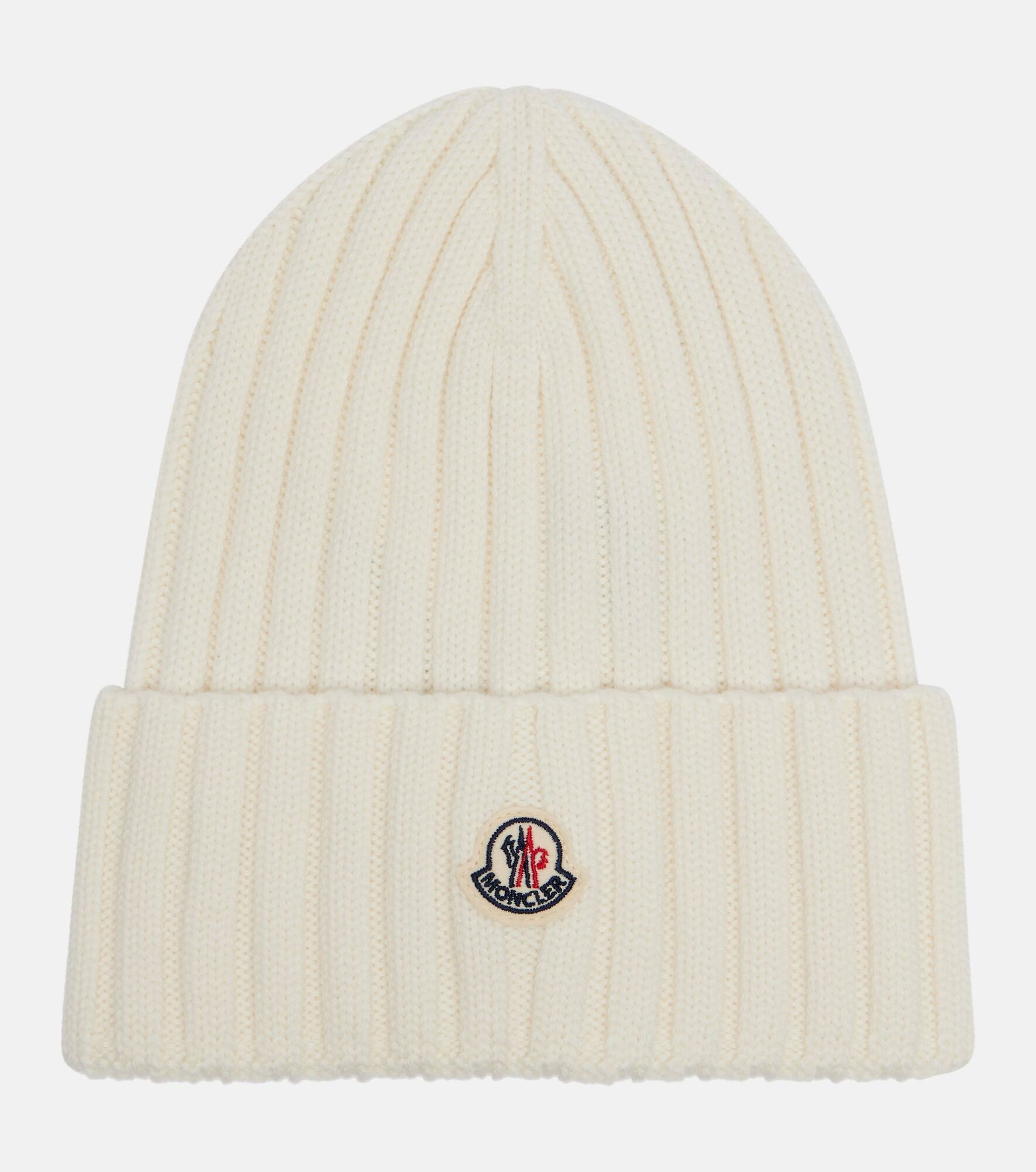 Crafted from pure virgin wool, this beanie from Moncler showcases a ribbed-knit style and the brand's logo on a patch. This design is mid-weight and ensures both comfort and warmth. Product Details - Material: 100% virgin wool - Care instructions: dry clean - Made in Moldova - Designer color name: White - Item color: white - Item number: P01082349