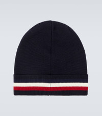 As the temperatures drop, incorporate warm accessories from Moncler into your looks. This beanie is knitted from virgin wool with a small logo patch and the brand's tricolor motif. Product Details - Material: 100% virgin wool - Care instructions: dry clean - Made in Romania - Designer color name: Navy Blue - Item color: blue - Item number: P01088918 Size & Fit - Circumference 58/66cm-23/26"