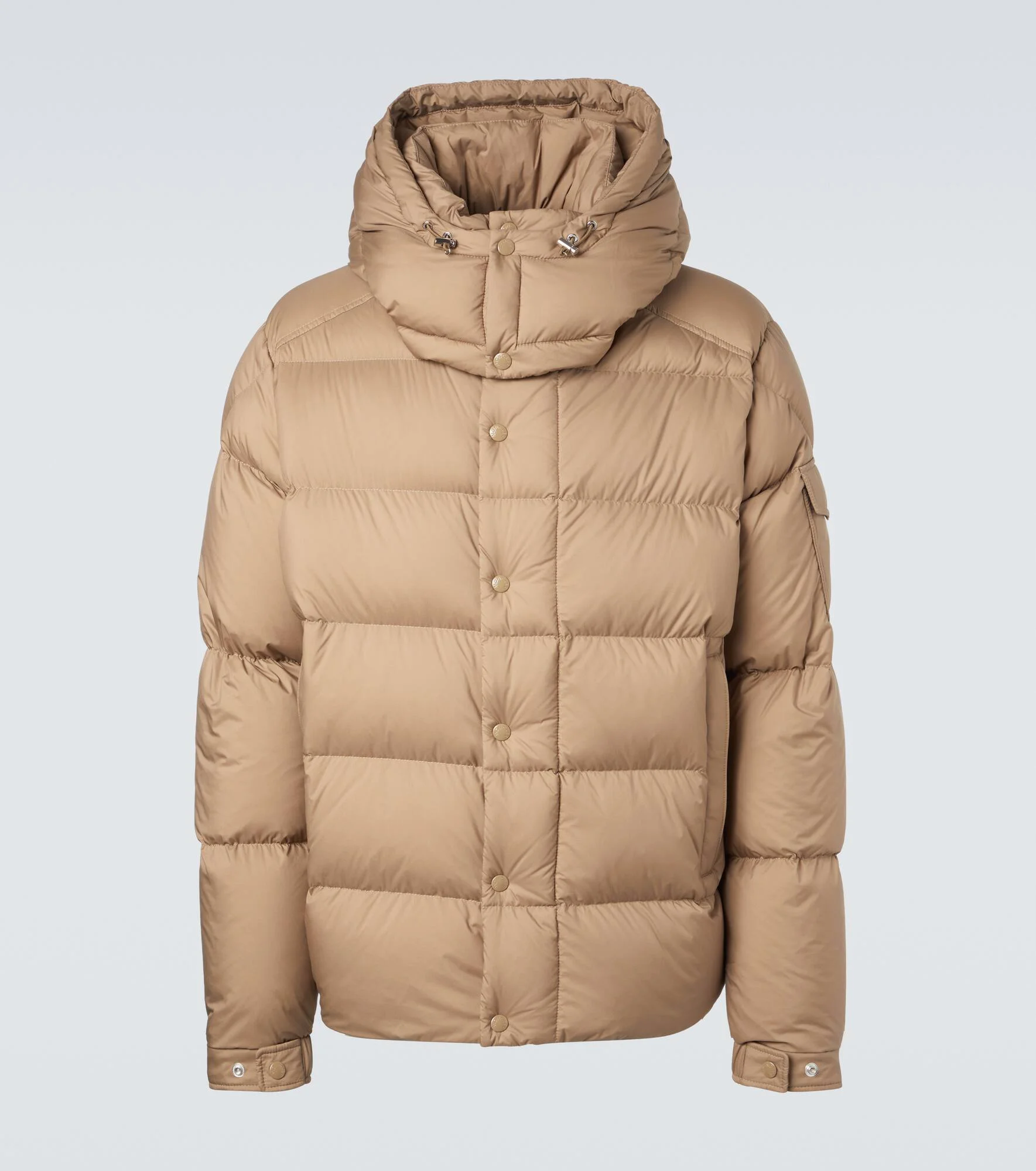 Keep warm in style with the Maya 70 jacket, filled with down and finished with a large hood. Exclusively sourced from DIST-certified suppliers, all Moncler down is derived from farmed geese as a byproduct of the food industry. Product Details - Material: 100% polyamide - Care instructions: hand wash - Made in Armenia - Designer color name: Elmwood - Item color: beige - Lining: 100% polyamide - Other inner trims: 100% polyamide - Filling: 90% down, 10% goose feathers - Contains non-textile parts of animal origin - Hardware color: silver - Detachable hood - Cuff: elasticated - Pockets: zipped pockets, internal pocket, sleeve pocket - Closure: two-way zipped front with snap-button fastenings - Drawstring at the hem for adjustable fit - Item number: P01088864 Size & Fit - True to size - Straight fit - Adjustable hem - Non-stretchy fabric - Falls below the hip - Height of model is 189cm-74.5" and wears a size 4