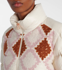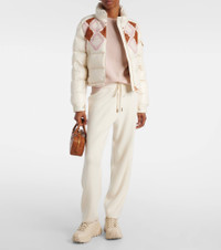 Quilted and down-padded for warmth, the Megara jacket is defined by striking contrast embroidery at the chest and front. Exclusively sourced from DIST-certified suppliers, all Moncler down is derived from farmed geese as a byproduct of the food industry. Product Details - Material: 100% polyamide - Care instructions: dry clean - Made in Italy - Designer color name: Beige + P - Item color: white - Lining: 100% polyamide - Details: 100% polyamide - Embroidery: 45% acrylic, 44% wool, 11% polyester - Filling: 90% down, 10% goose feathers - Closure: two-way zipped front - Hardware color: bronze - Pockets: zipped pockets, sleeve pocket - Cuff: two buttons - Drawstring at the hem for adjustable fit - Contains non-textile parts of animal origin - Item number: P01068117 Size & Fit - True to size - Straight fit - Adjustable hem - Non-stretchy fabric - Slightly cropped - The model seen in the picture is 178cm-5'10" and wearing a size 0