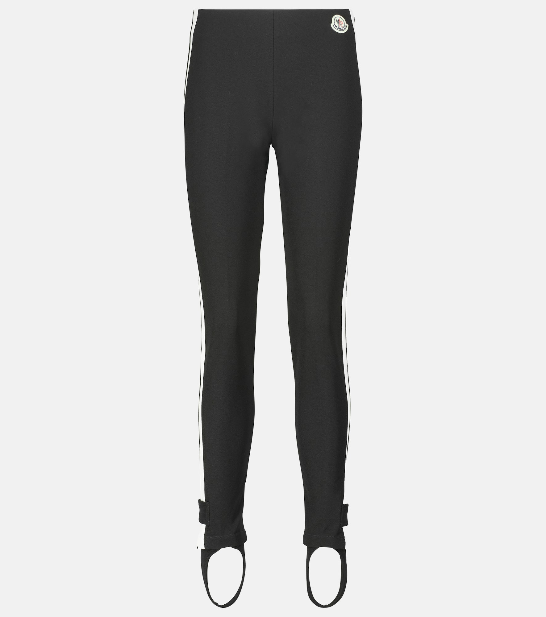 These high-rise leggings from Moncler will suit alpine retreats and city workouts alike. They're made from technical jersey fused with stretch for comfort and have contrasting logo detailing along the sides. Stirrup ankles will assuredly keep them in-place. Product Details - Closure: zipped side, hook fastening - Zipped ankle cuffs - Designer color name: Black - Material: 23% viscose, 71% polyamide, 6% elastane - Care instructions: dry clean - Item number: P00575588 Size & Fit - True to size - Mid-weight material - Stretchy fabric - Skinny leg - Inseam length approx: 72/84cm-28.5/33" - The model seen in the picture is 178cm-5'10" and wearing a size IT 40