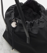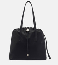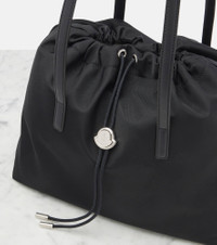 Designed for life on the move, the New Trick tote bag from Moncler is a spacious carryall made in Italy from water-repellent fabric. The design includes a drawstring closure to keep your belongings secure from the elements. Product Details - Material: nylon, polyester - Lining: nylon - Made in Italy - Designer color name: Black - Item color: black - Details: leather - Hardware color: silver - Top handles - Internal details: internal slot pocket, single compartment - Closure: drawstring top - Item number: P01102469 Size & Fit - Height 30cm-12" - Width 32,5cm-13" - Depth 15cm-6" - Length of handles 70cm-27.5"