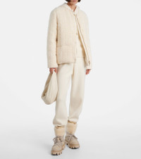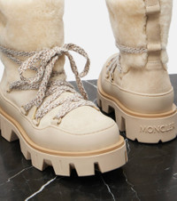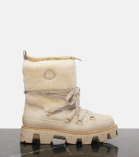 A heritage brand with a cult following, Moncler makes cold weather effortless to maneuver. Made in Italy from suede with plush shearling trims, the Peak Apres snow boots feature adjustable openings and chunky lug soles for traction. Product Details - Upper: lamb leather (suede), shearling - Lining: leather - Sole: fabric insole, rubber sole - Toe shape: round toe - Made in Italy - Includes: shoe box, dust bag - Designer color name: 20K - Item color: white, beige - Trim: rubber - Closure: drawstring, lace-up - Item number: P01074984 Size & Fit - True to size - European sizes - 4cm-1.5" platform (size EU 38) - 5cm-2" wedge heel (size EU 38)