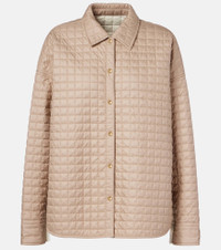 Strike a perfect balance between sophistication and functionality in this overshirt from Moncler. Featuring a square quilted pattern, the reversible style is complete with snap-button fastenings and the signature logo patch at the sleeve. Product Details - Material: 100% polyester - Care instructions: hand wash - Made in Hungary - Designer color name: Beige - Item color: beige - Details: 100% calf leather - Lining: 100% polyester - Filling: 100% polyester - Material II: 100% polyester - Contains non-textile parts of animal origin - Hardware color: gold - Collar: classic (Straight point) - Cuff: buttoned - Closure: snap-buttoned front - Hem: rounded - Quilted - Reversible - Item number: P01068129 Size & Fit - Fits large to size - we recommend trying one size smaller - Dropped shoulders - Designed for a loose fit - Non-stretchy fabric - Falls to the hip - The model seen in the picture is 178cm-5'10" and wearing a size IT 38