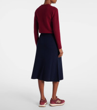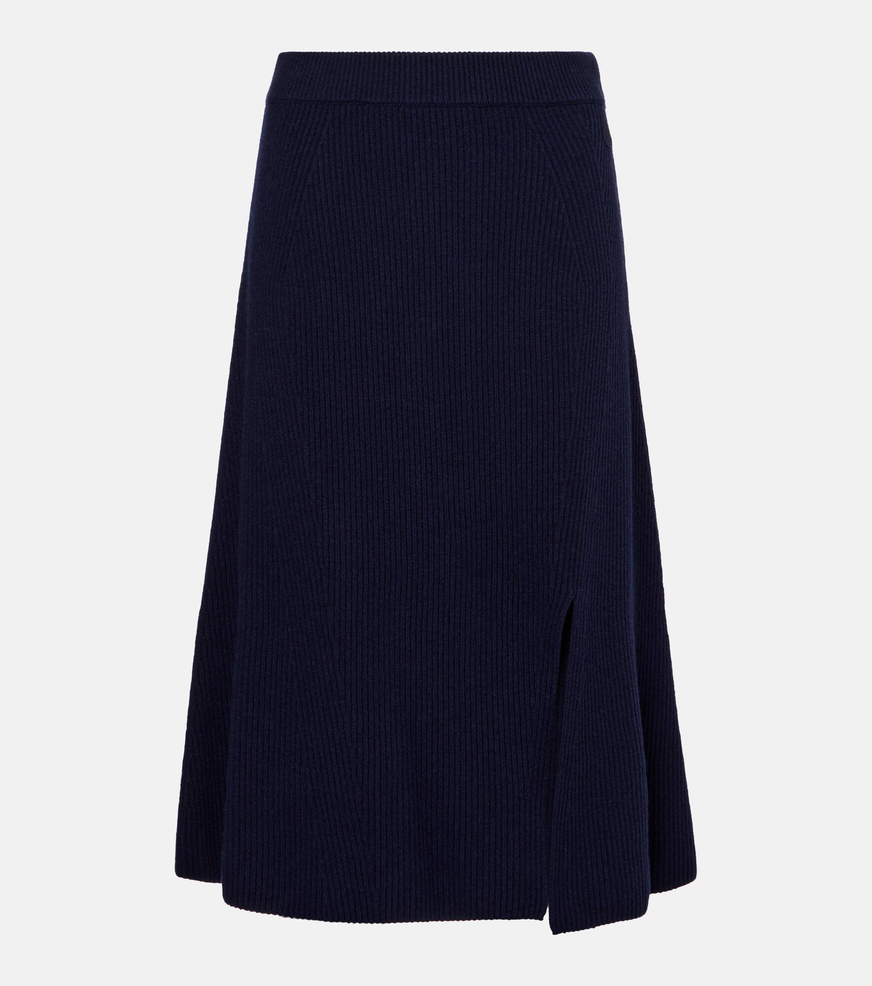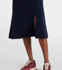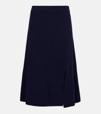 Made in Italy from a soft wool and cashmere blend, this ribbed-knit midi skirt from Moncler offers a refined take on everyday comfort – featuring a flared silhouette and elasticated waist for an effortless fit. Product Details - Material: 90% wool, 10% cashmere - Care instructions: dry clean - Made in Italy - Designer color name: Blue Navy - Item color: blue - Elasticated waistband - Short vent - Item number: P01068061 Size & Fit - True to size - Elasticated waist - Stretchy fabric - The model seen in the picture is 178cm-5'10" and wearing a size XS