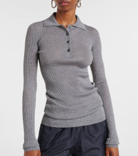 Ribbed-knit wool polo shirt