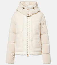 Exclusively sourced from DIST-certified suppliers, all Moncler down is derived from farmed geese as a byproduct of the food industry. The Ripaelle down jacket features a detachable drawstring hood and patch pockets. Product Details - Material: 100% polyamide - Care instructions: hand wash - Made in Hungary - Designer color name: 21L - Item color: beige - Material II: 45% acrylic, 31% polyester, 12% polyamide, 6% viscose, 6% wool - Lining: 100% polyamide - Lining II: 100% polyamide - Filling: 90% down, 10% feathers - Contains non-textile parts of animal origin - Closure: two-way zipped front - Pockets: patch pockets - Detachable drawstring hood - Cuff: elasticated - Item number: P01100862 Size & Fit - Fits small to size - we recommend trying one size larger - Straight fit - Non-stretchy fabric - Falls to the hip - The model seen in the picture is 178cm-5'10" and wearing a size 1