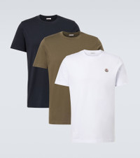 Build your capsule wardrobe with elevated iterations of wardrobe staples, like these T-shirts from Moncler. The set of three is crafted from cotton jersey and topped with the brand's unmistakable motif. Product Details - Material: 100% cotton - Care instructions: machine wash at 30 degrees - Made in Turkey - Designer color name: Blue/Olive Green/ White - Item color: multicolor - Item number: P01068494 Size & Fit - True to size - Straight fit - Slightly stretchy fabric - Falls below the hip - Height of model is 192cm-75.5" and wears a size L