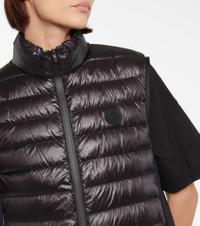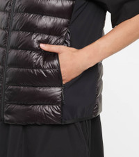 Pack the lightweight Spicules vest from Moncler on adventurous weekend trips. Padded with down for optimum insulation without compromising its featherweight feel, it's fitted with nylon side panels for a slender fit. Product Details - Material III: 21% elastane, 79% polyamide - Lining: fully lined, 100% polyamide - Pockets: zipped pockets - Material II: 73% polyamide, 27% elastane - Designer color name: Black - Material: 100% polyamide - Filling: 90% down, 10% feathers - Closure: zipper fastening - Care instructions: hand wash - Item number: P00575566 Size & Fit - True to size - Designed for a loose fit - Lightweight material - Falls to the hip - The model seen in the picture is 178cm-5'10" and wearing a size 0