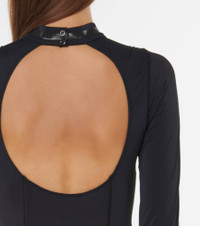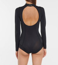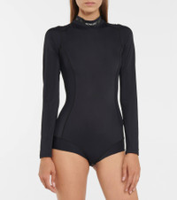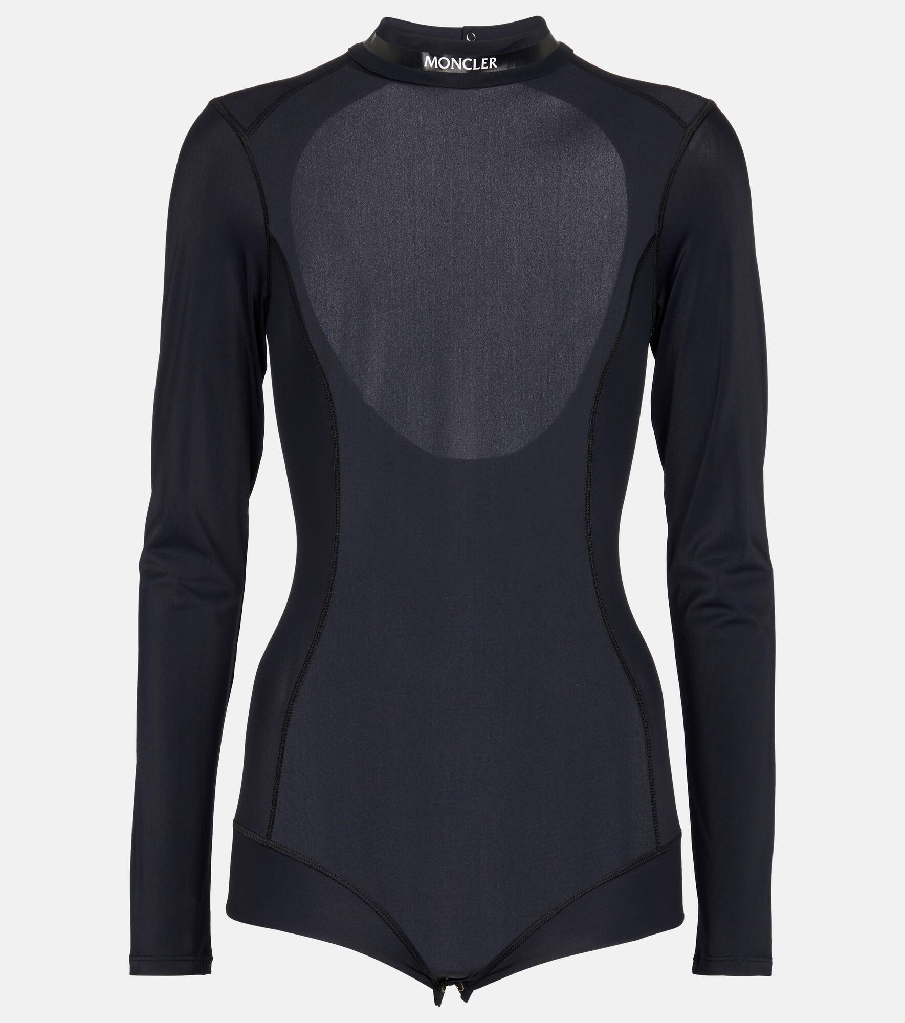 Build workout looks around this black bodysuit from Moncler. Made from technical stretch jersey, it has a form-fitting silhouette with a logo-printed mock neck. Product Details - Closure: snap-buttoned fastenings - Care instructions: machine wash at 30 degrees - Designer color name: Black - Material: 27% elastane, 73% polyamide - Item number: P00575618 Size & Fit - True to size - Low back - Fitted - Lightweight material - Stretchy fabric - Low-cut leg - The model seen in the picture is 178cm-5'10" and wearing a size XS