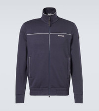 Designed for versatility and warmth, this Moncler zip-up sweatshirt is crafted from a technical jersey. Made for active lifestyles, this navy piece features a subtle logo on the side, an elasticated hem, and buttoned pockets. Product Details - Material: 44% cotton, 44% modal, 12% polyester - Care instructions: machine wash at 30 degrees - Made in Turkey - Designer color name: Navy Blue - Item color: blue - Details: 100% calf leather - Lining: 50% cotton, 50% micromodal - Filling: 100% polyester - Contains non-textile parts of animal origin - Closure: two-way zipped front - Pockets: buttoned pockets - Hem: elasticated - Item number: P01068500 Size & Fit - True to size - Straight fit - Elasticated hem - Slightly stretchy fabric - Falls to the hip - Height of model is 187cm-73.5" and wears a size M