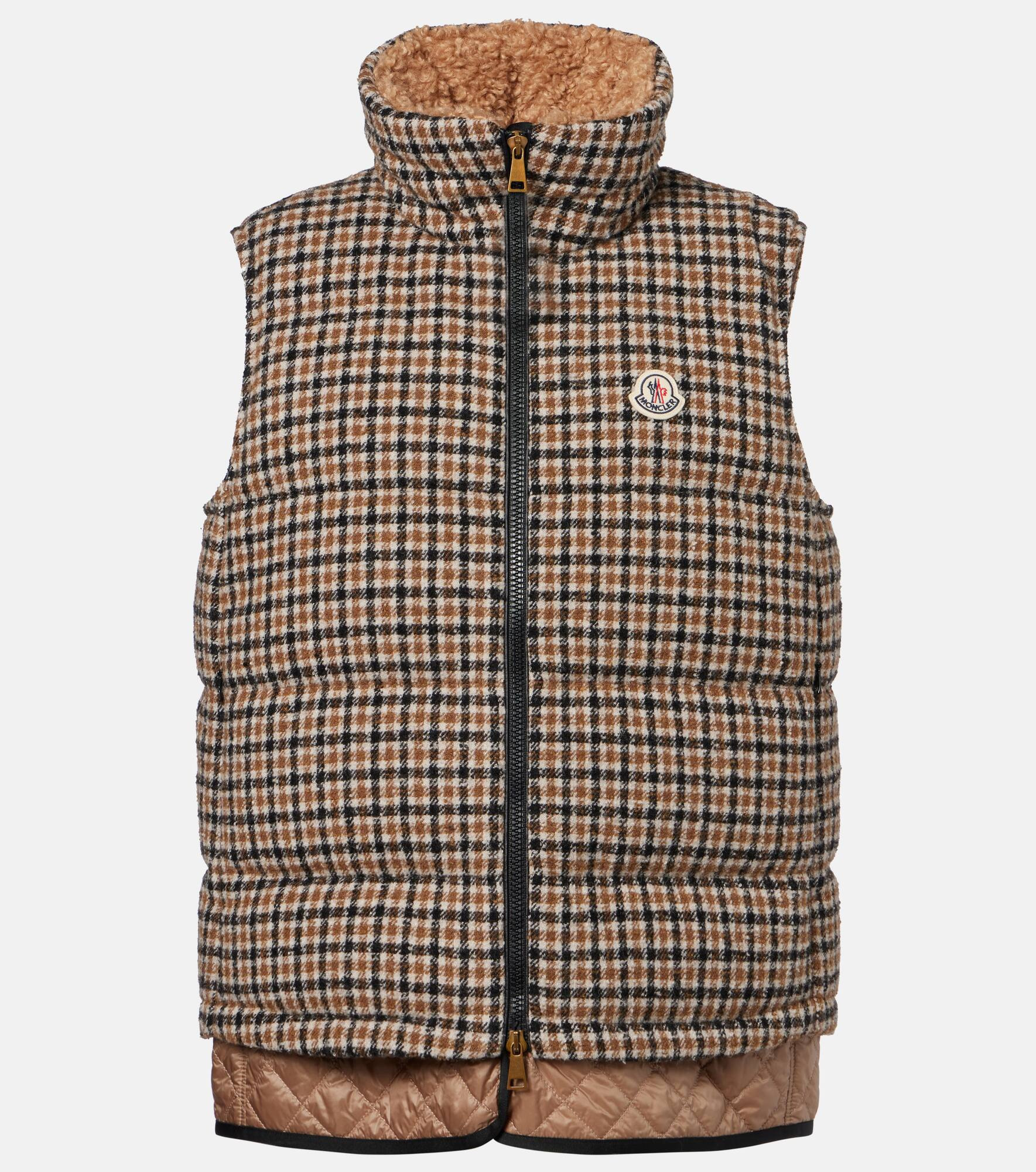 Crafted from a soft wool-blend, the Touvet down vest showcases an all-over checked pattern and comes with a detachable puffer jacket. Exclusively sourced from DIST-certified suppliers, all Moncler down is derived from farmed geese as a byproduct of the food industry. Product Details - Material: 58% wool, 24% polyamide, 18% lyocell - Care instructions: dry clean - Made in Romania - Designer color name: F92 - Item color: beige, black - Lining: 100% polyamide - Lining II: 100% polyester - Filling: 100% polyester - Insert: 100% polyamide - Filling II: 90% down, 10% feathers - Contains non-textile parts of animal origin - Closure: two-way zipped front - Pockets: zipped pockets - Item number: P01100842 Size & Fit - True to size - Straight fit - Non-stretchy fabric - Falls to the hip - The model seen in the picture is 178cm-5'10" and wearing a size 0