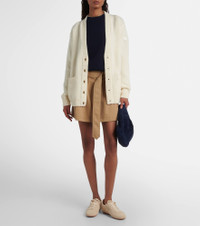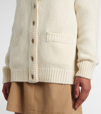 Expertly crafted in Italy from wool and cashmere, this Moncler cardigan is a timeless wardrobe staple for cold-weather seasons. The design boasts a flattering V-neckline, elegant gold-toned buttons, and practical welt pockets. Product Details - Material: 90% wool, 10% cashmere - Care instructions: dry clean - Made in Italy - Designer color name: 034 - Item color: white - Details: 100% calf leather - Contains non-textile parts of animal origin - Hardware color: gold - Pockets: welt pockets - Closure: buttoned front - Item number: P01100905 Size & Fit - Fits large to size - we recommend trying one size smaller - Dropped shoulders - Designed for a loose fit - Non-stretchy fabric - Falls below the hip - The model seen in the picture is 178cm-5'10" and wearing a size XXS