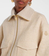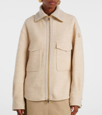 Renowned for its iconic outerwear, Moncler fuses sophisticated design with functional excellence. Crafted from a soft wool blend, this jacket features flap pockets, buttoned cuffs, and a ribbed collar for a refined finish. Product Details - Material: 62% wool, 28% viscose, 10% polyamide - Care instructions: dry clean - Made in Bulgaria - Designer color name: 268 - Item color: beige - Details: 100% calf leather - Contains non-textile parts of animal origin - Hardware color: gold - Closure: two-way zipped front - Pockets: flap chest pockets - Cuff: two buttons - Hem: rounded - Item number: P01101175 Size & Fit - True to size - For a closer fit, we recommend taking one size down - Dropped shoulders - Oversized - Non-stretchy fabric - Falls below the hip - The model seen in the picture is 178cm-5'10" and wearing a size IT 40