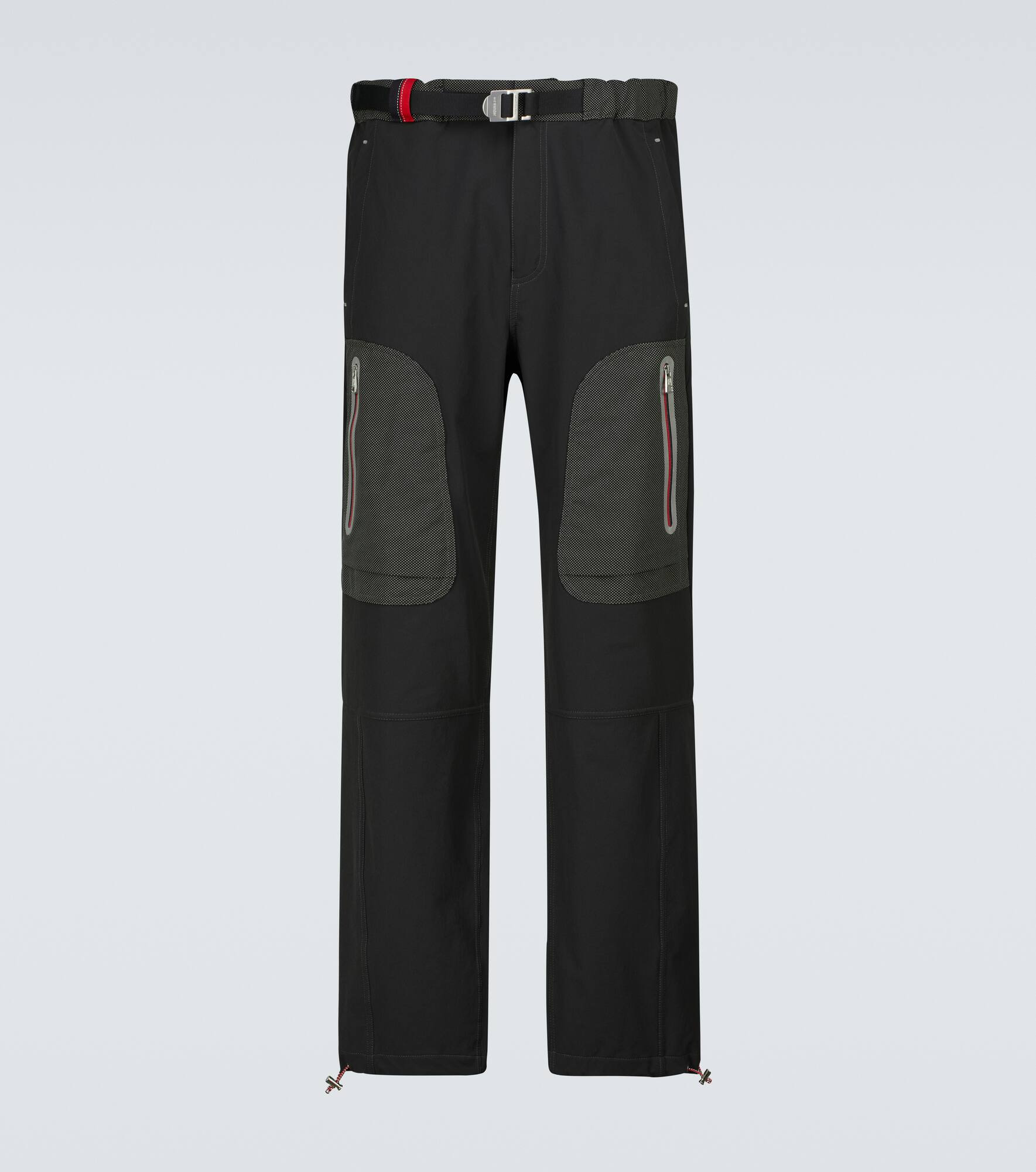 In collaboration with And Wander, these black pants from Moncler Genius' 2 Moncler 1952 collection sport a relaxed style, featuring reflective details and practical elements connected to the hiking world. This style is made from nylon stretch fabric with a buckle belt at the waist. Product Details - Attached belt - Care instructions: machine wash at 30 degrees - Designer color name: Black - Closure: snap-buttoned front, zipped front - Material: 90% polyamide, 10% elastane - Pockets: zipped pockets - Item number: P00563997 Size & Fit - True to size - Designed for a loose fit - Adjustable at the waist - Mid-weight material - Inseam length approx: 76cm-30" - The model in the picture is 185cm-6'1" and wearing a size M