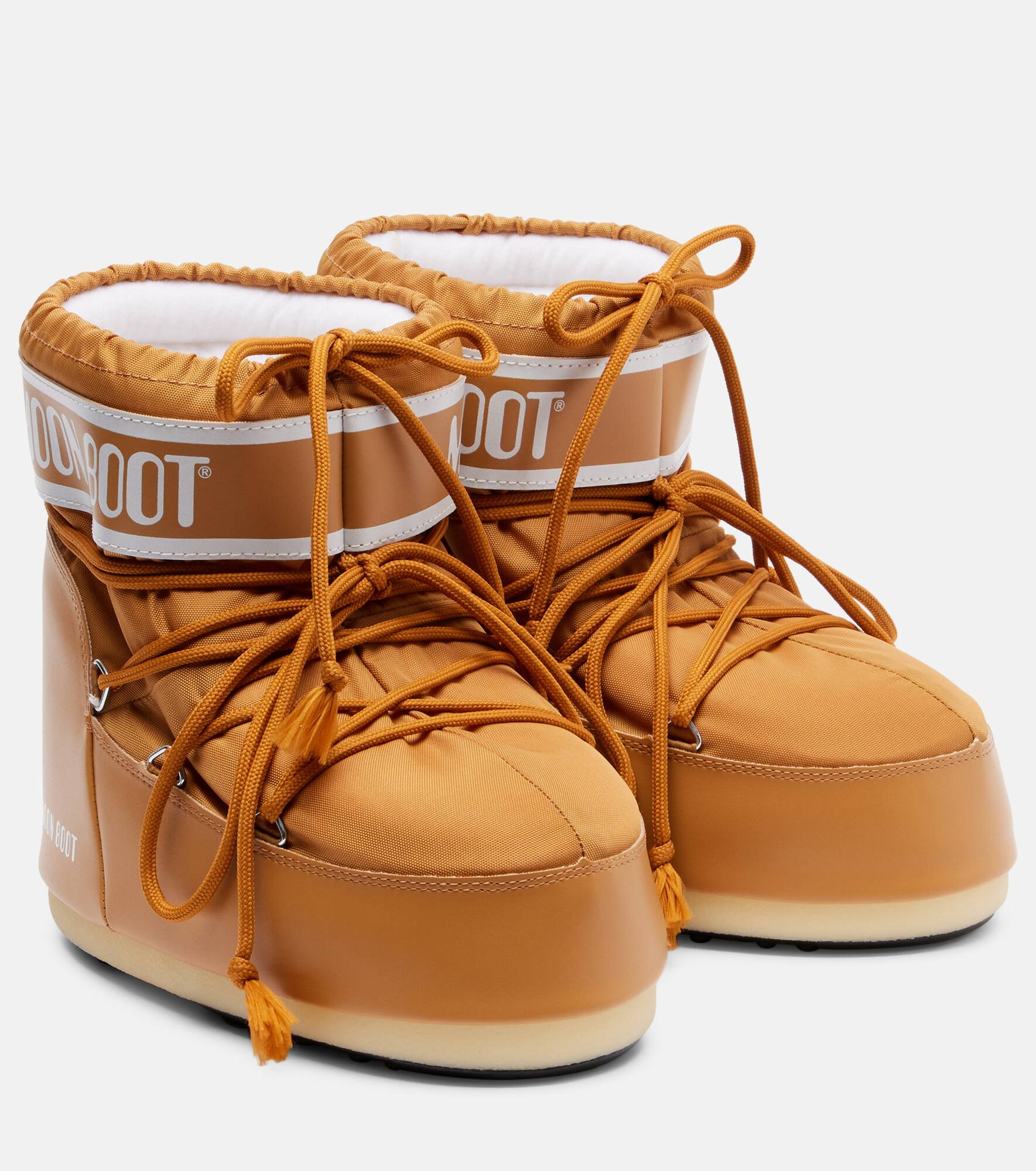 The Icon Low snow boots from Moon Boot are an essential for cold-weather seasons. This rounded-toe design features a lace-up closure, a thermoplastic sole for reliable traction, and the brand’s signature detailing. Product Details - Upper: fabric - Lining: fabric - Sole: fabric insole, rubber sole - Toe shape: round toe - Made in Albania - Includes: dust bag, shoe box - Designer color name: Cognac - Item color: beige - Item number: P01111211 Size & Fit - True to size - European sizes - 2cm-1" platform (size EU 38) - Size 36 = EU shoe size 36/38 - Size 39 = EU shoe size 39/41 - Size 42 = EU shoe size 42/44