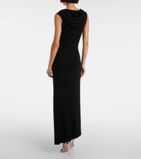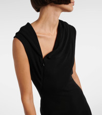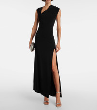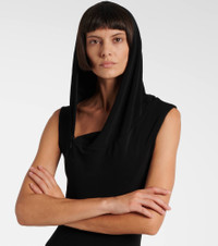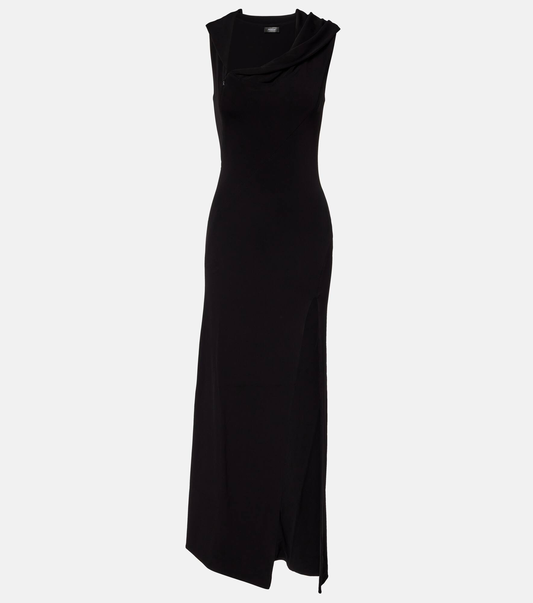 Best known for sculptural silhouettes, the Parisian house of Mugler challenges conventional fashion design. This gown stands out with a draped jersey construction, complemented by an asymmetric neckline, integrated hood, and front slit detailing. Product Details - Material: 97% viscose, 3% elastane - Care instructions: hand wash - Made in Portugal - Designer color name: Black - Item color: black - Closure: partially zipped front - Hood - Long vent - Item number: P01060852 Size & Fit - True to size - Fitted - Stretchy fabric - The model seen in the picture is 178cm-5'10" and wearing a size FR 36