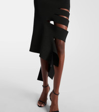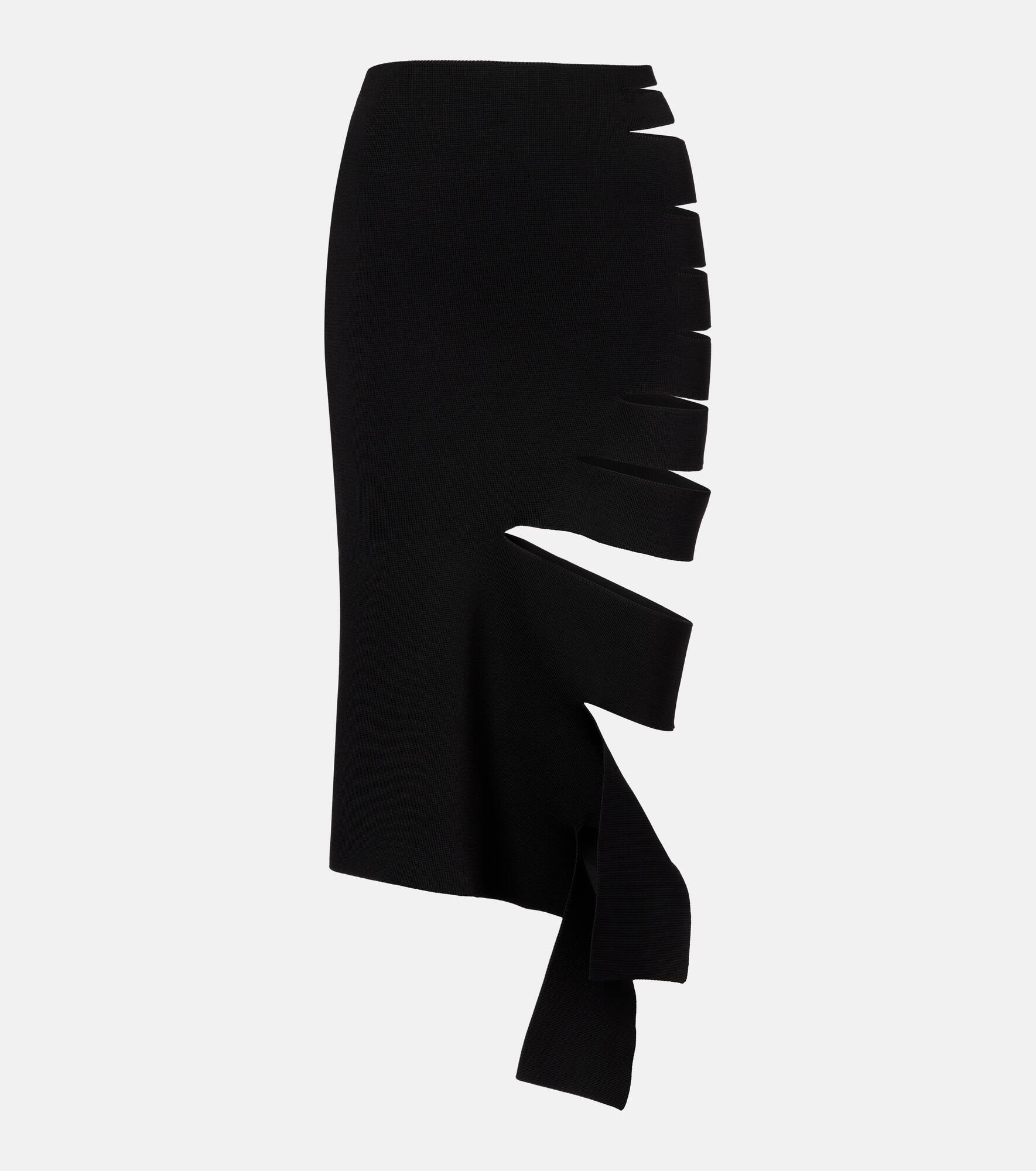 Best known for its sculptural silhouettes, the Parisian house of Mugler challenges conventional fashion design. The fitted midi skirt is defined by cut-outs, showcasing the brand’s signature approach to body-conscious dressing. Product Details - Material: 72% viscose, 19% polyamide, 9% elastane - Care instructions: machine wash at 30 degrees - Made in Portugal - Designer color name: Black - Item color: black - Item number: P01060867 Size & Fit - Fits small to size - we recommend trying one size larger - Stretchy fabric - The model seen in the picture is 178cm-5'10" and wearing a size S