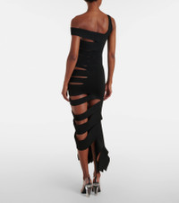 This midi dress from Mugler features a figure-sculpting silhouette complete with striking cutouts along the side. The bandage knit design is complete with a flattering asymmetric neckline. Product Details - Material: 72% viscose, 26% polyamide, 2% elastane - Care instructions: machine wash at 40 degrees - Made in Portugal - Designer color name: Black - Item color: black - Item number: P01028447 Size & Fit - Fits small to size - we recommend trying one size larger - Fitted - Slightly stretchy fabric - The model seen in the picture is 178cm-5'10" and wearing a size S