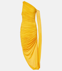 Best known for its sculptural silhouettes, the Parisian house of Mugler challenges conventional fashion design. This maxi dress features a one-shoulder neckline, an asymmetric hemline, and elegant draping with gathered detailing. Product Details - Material: 100% viscose - Care instructions: machine wash at 30 degrees - Made in Tunisia - Designer color name: Marigold - Item color: yellow - Closure: invisible zipper - Item number: P01060856 Size & Fit - True to size - Fitted - Slightly stretchy fabric - The model seen in the picture is 178cm-5'10" and wearing a size FR 36