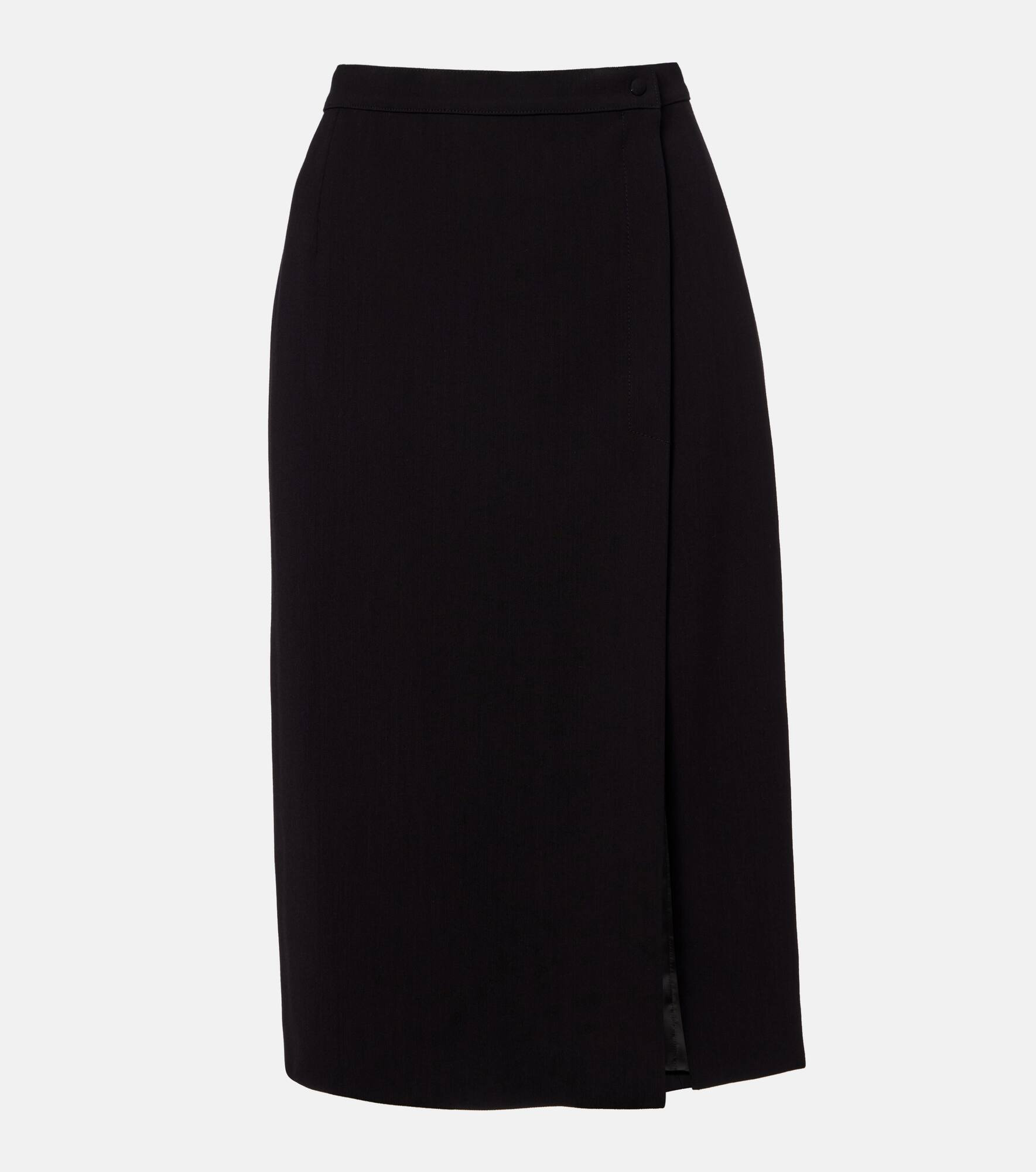 Best known for its sculptural styles, the Parisian house of Mugler challenges conventional fashion design. This midi skirt is tailored to a wrap silhouette and features a high-rise waistline. Product Details - Material: 78% viscose, 22% wool - Care instructions: dry clean - Made in Ukraine - Designer color name: Black - Item color: black - Lining: 100% cupro - Closure: snap-buttoned sides - Hem: straight - Side slits - Item number: P01104884 Size & Fit - True to size - Non-stretchy fabric - High-waisted - The model seen in the picture is 178cm-5'10" and wearing a size FR 36