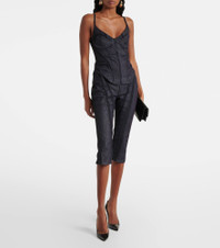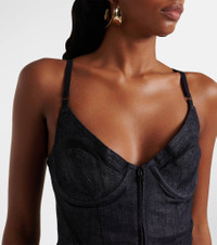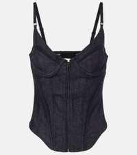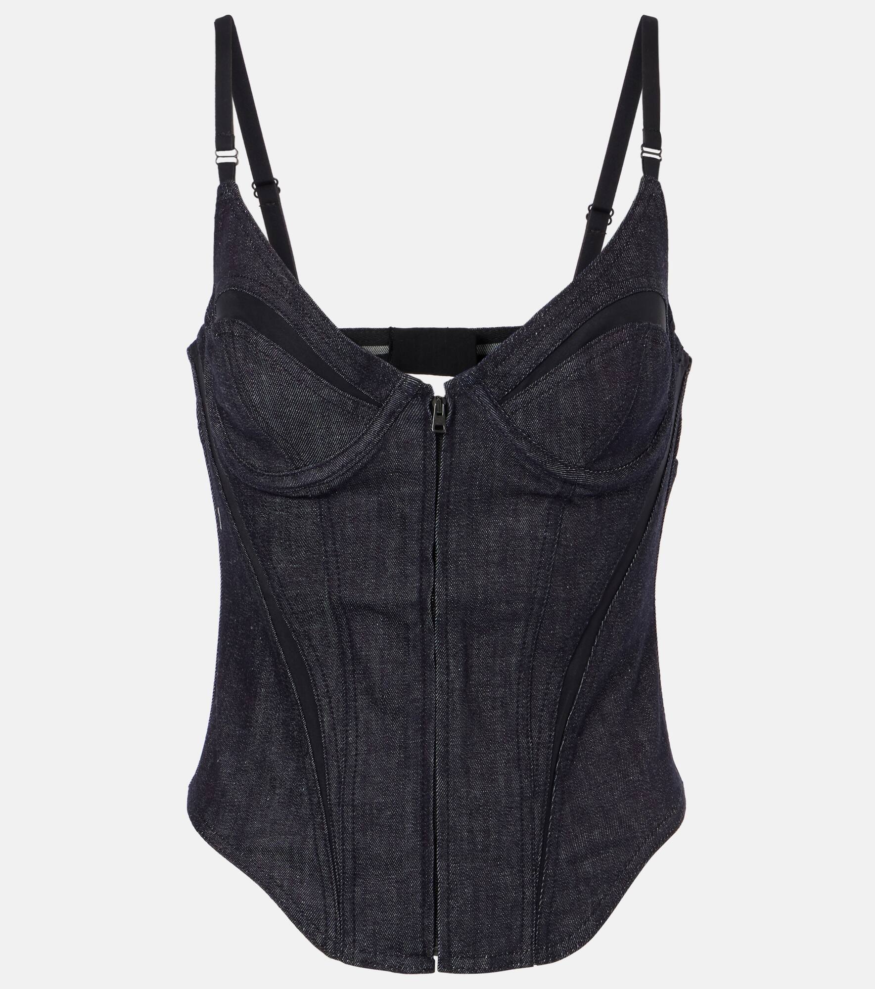 Mesh-trimmed denim corset