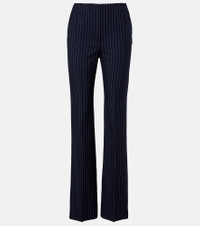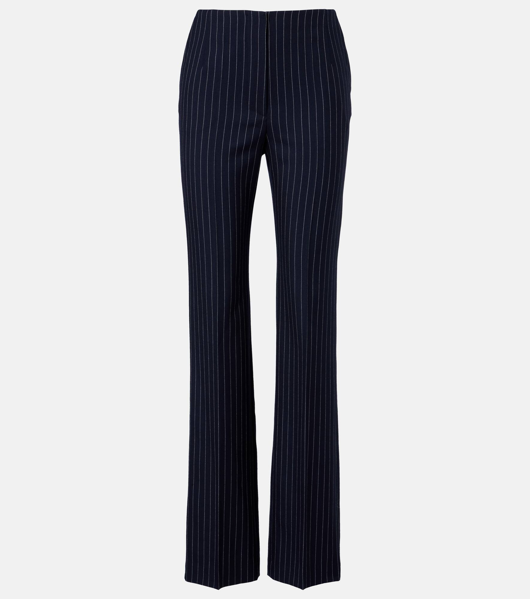 Best known for its sculptural styles, the Parisian house of Mugler challenges conventional fashion design. Crafted from wool, these straight pants are tailored to a high-rise silhouette and finished with a sophisticated pinstripe pattern. Product Details - Material: 98% wool, 2% polyester - Care instructions: dry clean - Made in Ukraine - Designer color name: Navy / White - Item color: blue - Lining: 100% cupro - Pockets: side slit pockets - Closure: zipper fly, button fastening - Item number: P01104883 Size & Fit - True to size - Non-stretchy fabric - Straight leg - High-waisted - The model seen in the picture is 178cm-5'10" and wearing a size FR 36