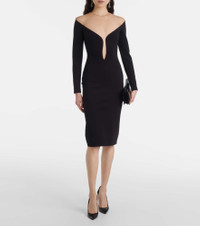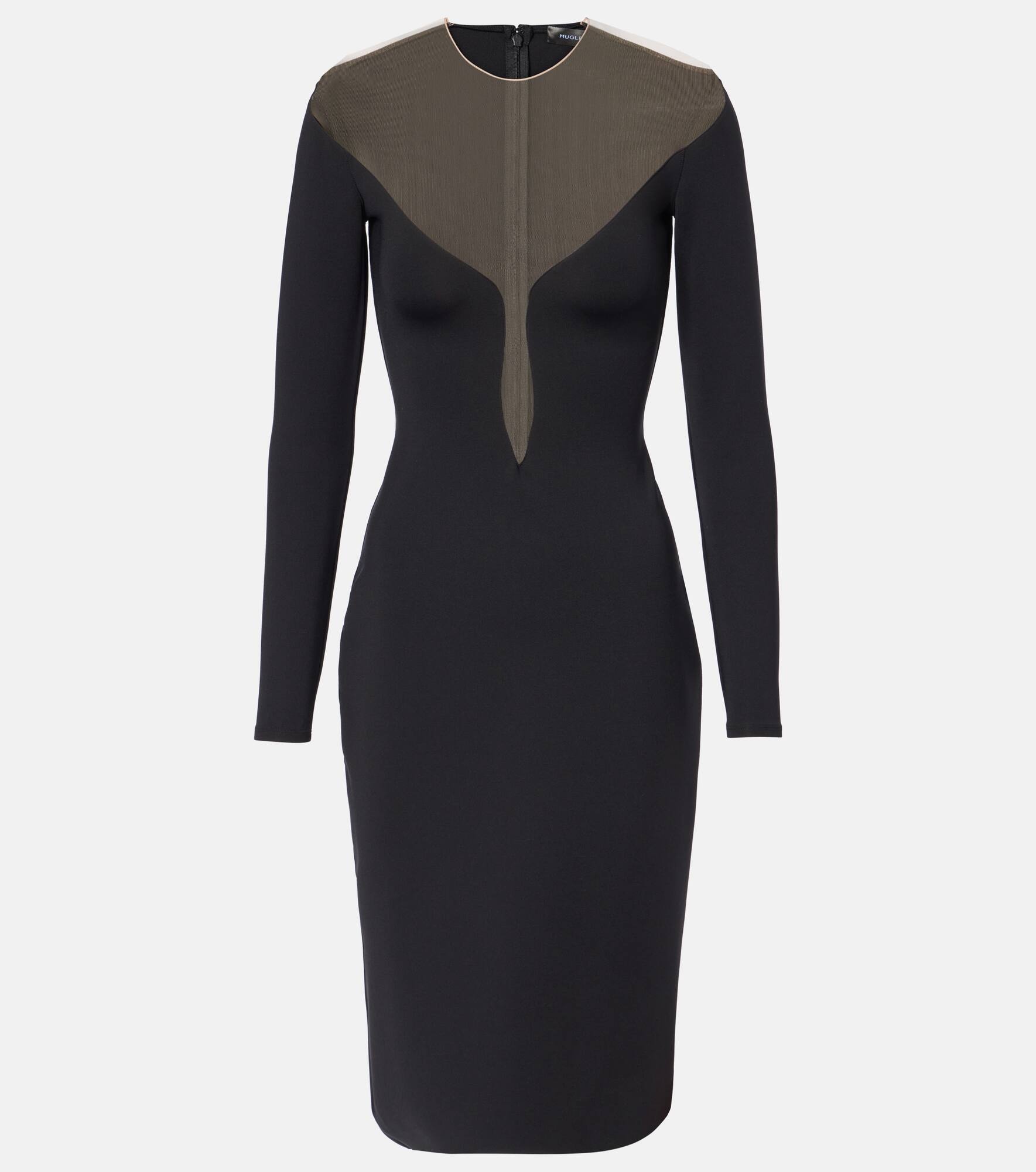 black illusion neckline midi dress