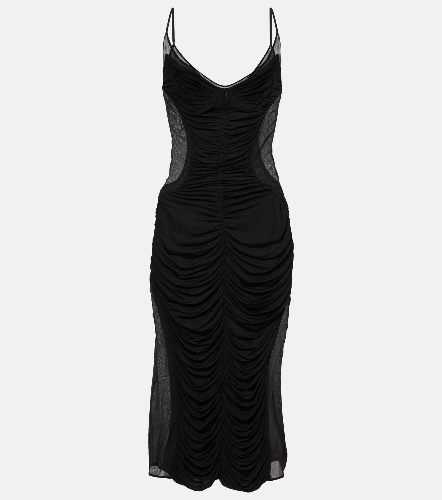 Ruched mesh midi dress