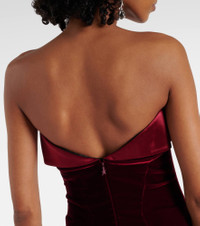 Product Details - Material: 66% rayon, 32% cupro, 2% elastane - Care instructions: specialist clean - Made in Bulgaria - Designer color name: Blood Red - Closure: zipped back - Material II: 72% viscose, 28% silk - Material III: 100% polyamide - Lining: 100% cupro - Item number: P01010826 Size & Fit - True to size - Low back - Strapless - Internal corset with underwire support - Cinched waist - Non-stretchy fabric - The model seen in the picture is 178cm-5'10" and wearing a size FR 36