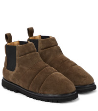 The Bede ankle boots from Nanushka are made from padded suede for a distinctly rich feel. They have elasticated inserts -in the classic Chelsea style- and are set on thick tread soles. - upper: leather - lining: leather - sole: leather insole, rubber sole - round toe - elasticated sides - Made in Italy - comes with dust bag - comes with a box - Designer colour name: Olive size & fit - True to size - Narrow fit due to lining - Half sizes please take the next size up - European sizes - 3,5cm-1.5" heel (size EU 38) - 2cm-1" platform (size EU 38)