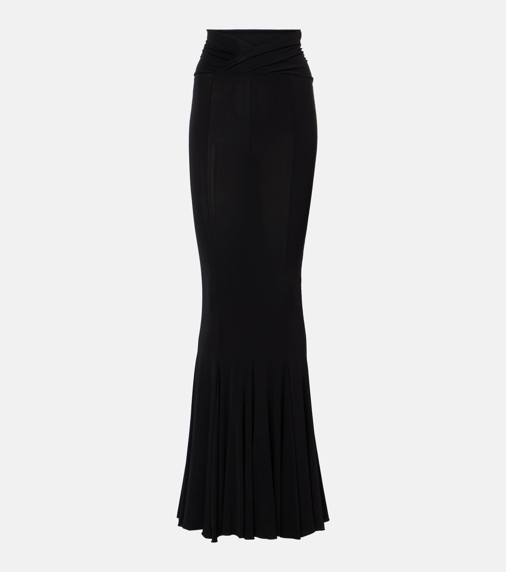 V-Waist Flared Jersey Maxi Skirt black