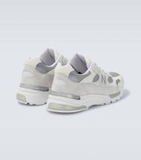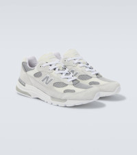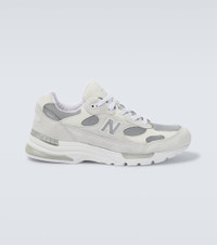 The 992 sneakers from New Balance feature supple suede-trimming and rounded toes. The design is complete with the brand's iconic logos on the sides and lace-up closures. Product Details - Upper: fabric, leather (suede) - Lining: fabric - Sole: fabric insole, rubber sole - Toe shape: round toe - Made in the USA - Includes: shoe box - Designer color name: White - Item color: white - Item number: P01013392 Size & Fit - Fits slightly small to size - we recommend trying a half size larger - US sizes