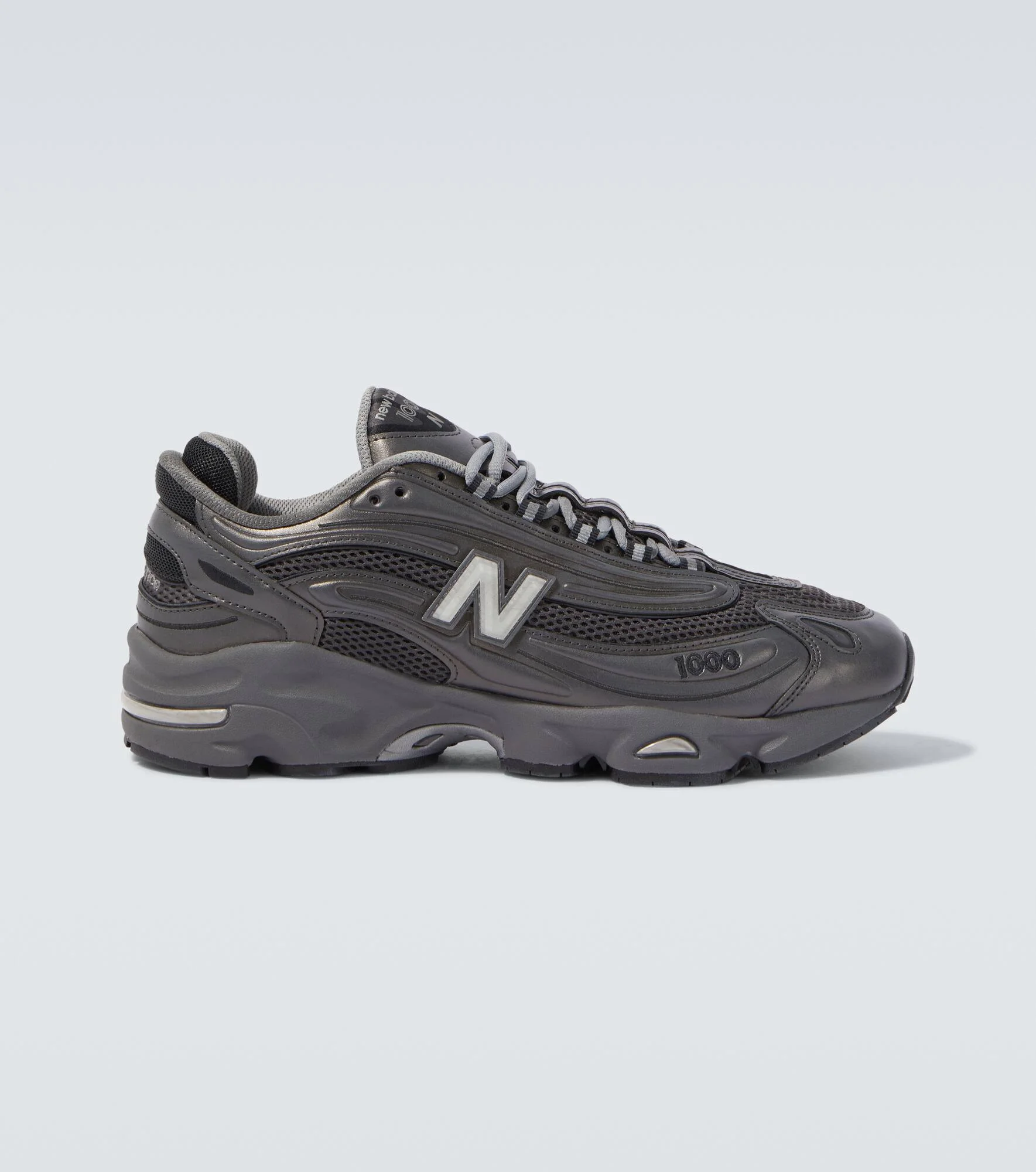 The M1000 sneakers from New Balance feature an almond toe and a layered upper that blends mesh and synthetic materials, offering comfort and structure in a retro-futuristic silhouette grounded in technical performance. Product Details - Upper: fabric, rubber - Lining: fabric - Sole: fabric insole, rubber sole - Toe shape: almond toe - Made in China - Includes: shoe box - Designer color name: Black Metallic - Item color: black - Item number: P01081217 Size & Fit - True to size - US sizes
