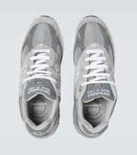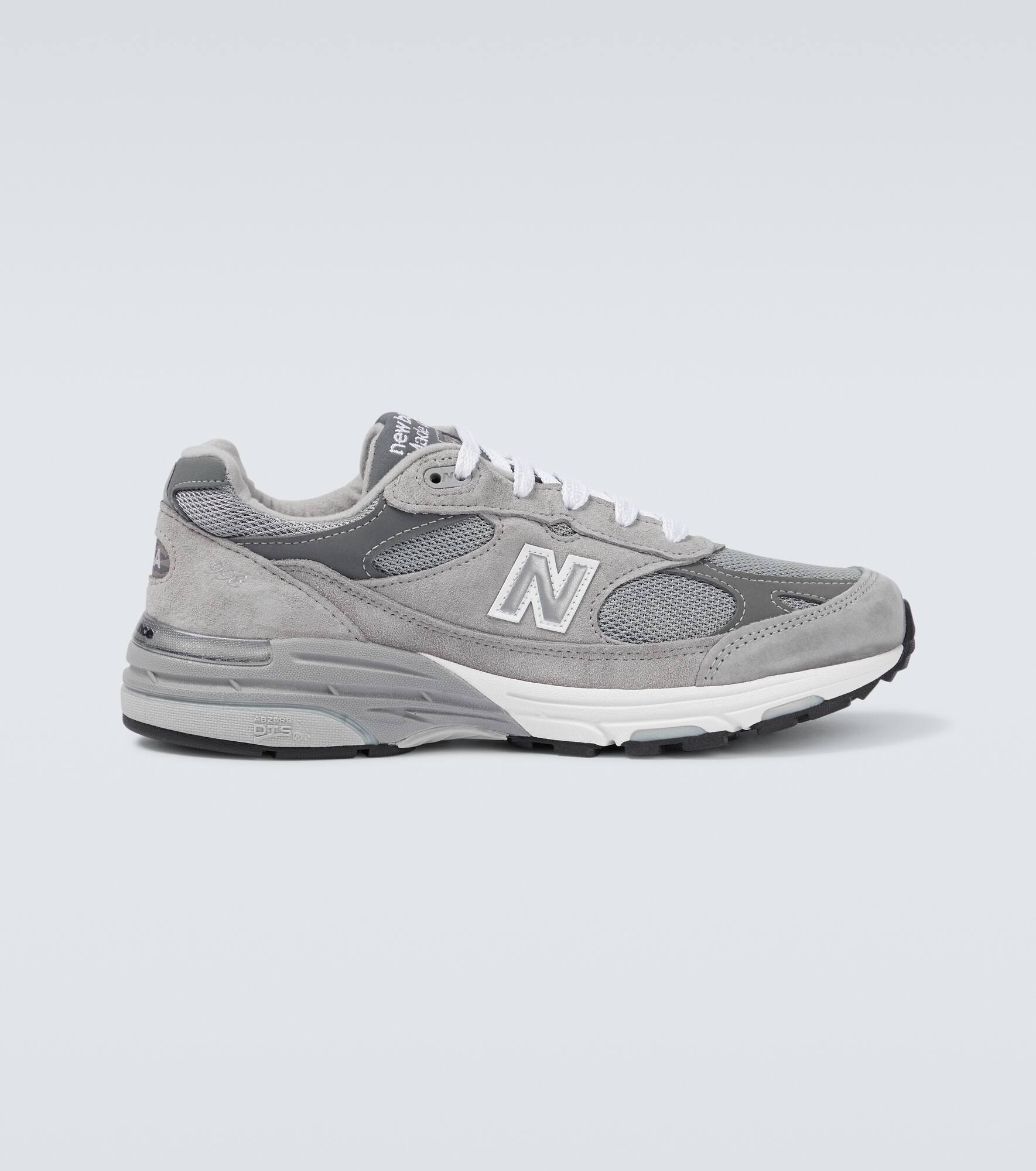 The 993 sneakers from New Balance's Made in USA collection are a timeless classic. Made from breathable mesh uppers with tonal leather trims, they feature ABZORB midsoles for comfort and support. Product Details - Made in the USA - Upper: fabric, calf leather - Toe shape: round toe - Sole: fabric insole, rubber sole - Comes with a box - Closure: lace-up - Lining: fabric - Item number: P00694538 Size & Fit - Fits slightly small to size - we recommend trying a half size larger - US sizes
