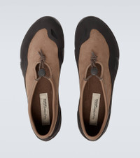 The MT10T New Balance sneakers reinterpret classic slip-on silhouettes—from loafers to Mary Janes—into a minimalist design with a trail running-inspired spirit. Crafted with nubuck uppers, the pair is detailed with protective rubber edges and sits on rounded lug Vibram soles. Product Details - Upper: leather (nubuck), rubber - Lining: leather - Sole: fabric insole, rubber sole - Color: beige - Toe shape: round toe - Made in Vietnam - Includes: shoe box - Designer color name: Beige/Brown - Item color: beige, brown - Closure: drawstring - Item number: P01122562 Size & Fit - Fits slightly small to size - we recommend trying a half size larger - US sizes