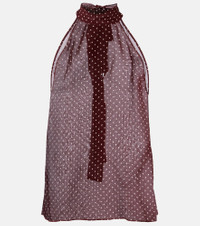 Invest in Nili Lotan's timeless wardrobe staples – where impeccable fit meets sophisticated tailoring. The Alla top is crafted from pure silk with all-over polka dots and a halter neckline. Product Details - Material: 100% silk - Care instructions: dry clean - Made in the USA - Designer color name: Bordeaux/Cream Dots - Item color: burgundy, white - Item number: P01076423 Size & Fit - True to size - Semi-sheer - Straight fit - Non-stretchy fabric - Falls to the hip - The model seen in the picture is 178cm-5'10" and wearing a size US 4