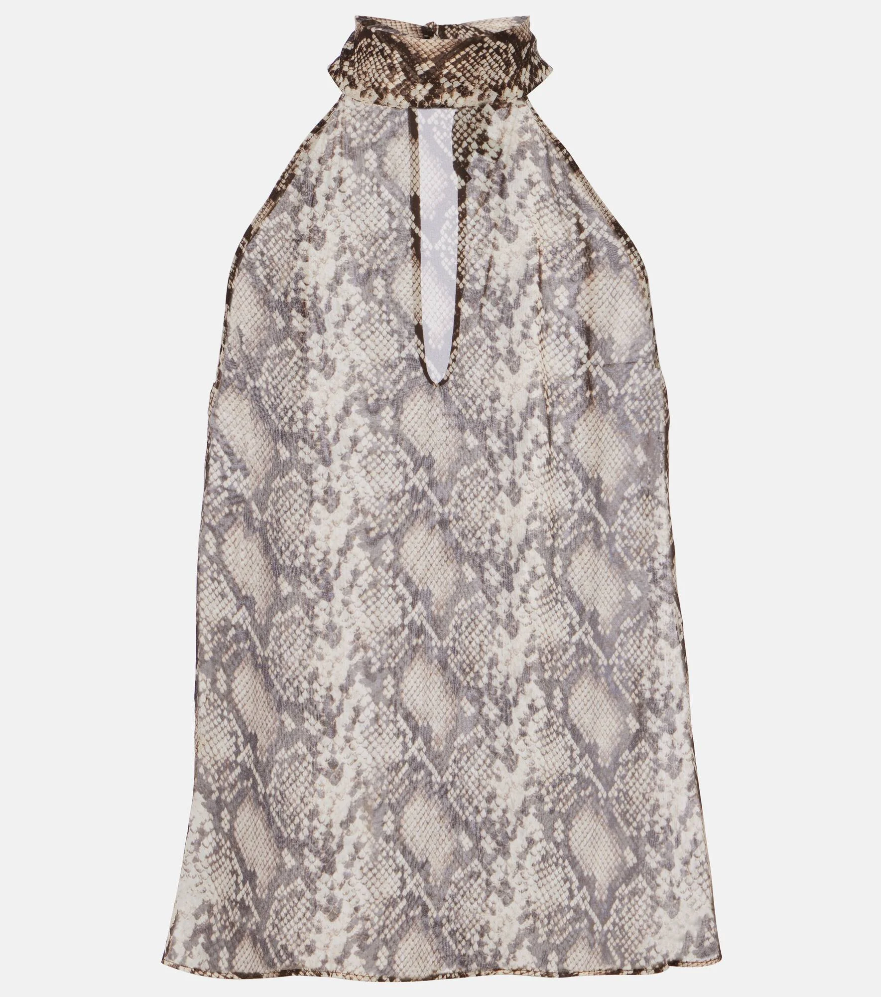 Invest in Nili Lotan's timeless wardrobe staples – where impeccable fit meets sophisticated tailoring. The Alla halterneck top features a silk construction finished with an all-over snake print. Product Details - Material: 100% silk - Care instructions: dry clean - Made in the USA - Color: white - Designer color name: Stone/Brown Snake Print - Self-tie neck - Item number: P01124541