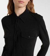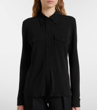 Product Details - Material: 100% viscose - Care instructions: dry clean - Made in the USA - Designer color name: Black - Buttoned cuffs - Closure: button-down - Pockets: breast pockets - Item number: P01021502 Size & Fit - True to size - Straight fit - Slightly stretchy fabric - Falls to the hip - The model seen in the picture is 178cm-5'10" and wearing a size XS