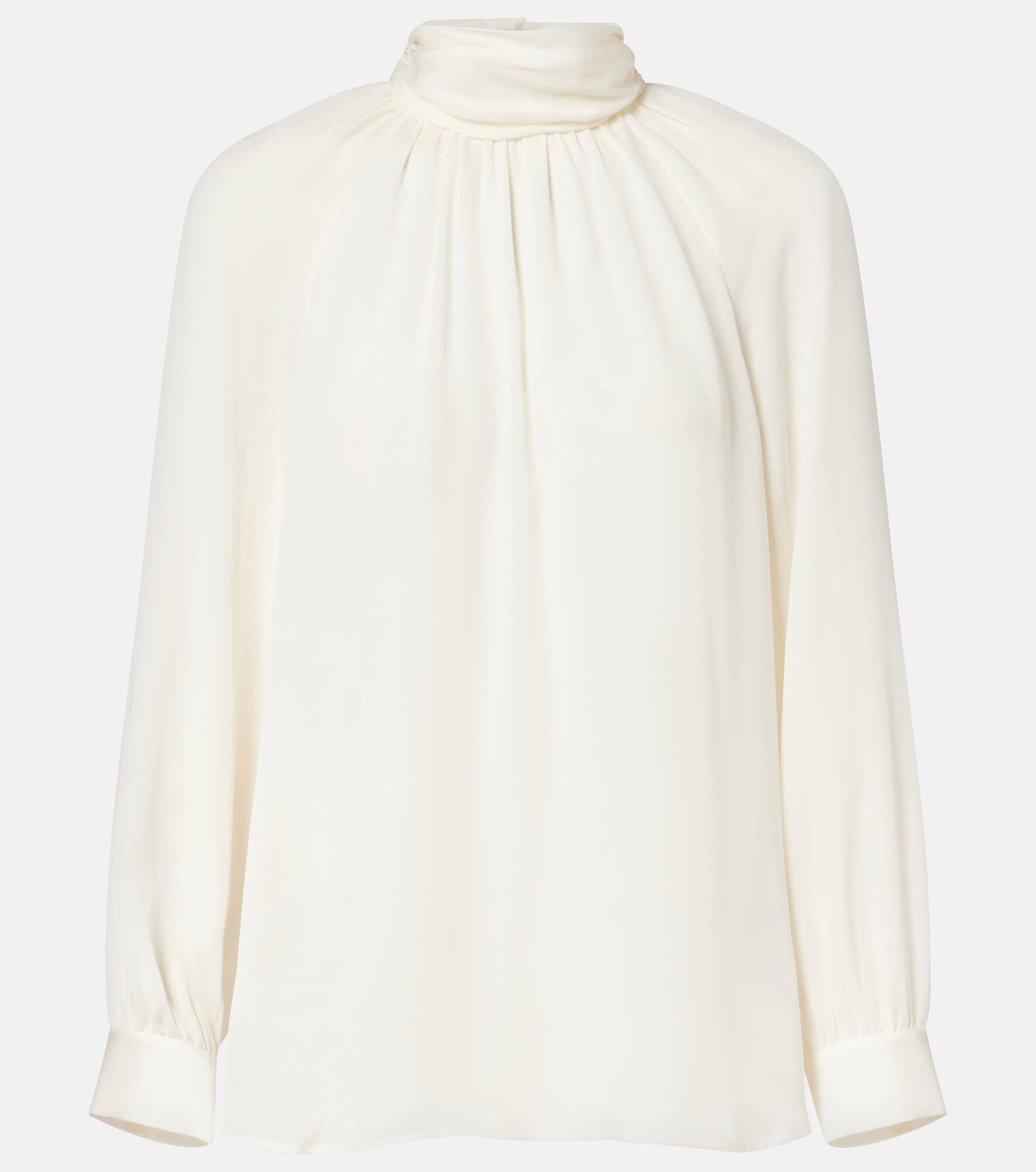 Invest in Nili Lotan's timeless wardrobe staples – where impeccable fit meets sophisticated tailoring. Crafted from breezy silk georgette, the Axelle blouse features delicate pleating at the mock neckline. Product Details - Material: 100% silk - Care instructions: dry clean - Made in the USA - Designer color name: Ivory - Item color: white - Collar: mockneck - Cuff: buttoned - Closure: buttoned back - Item number: P01076396 Size & Fit - True to size - Semi-sheer - Designed for a loose fit - Non-stretchy fabric - Falls below the hip - The model seen in the picture is 178cm-5'10" and wearing a size XS