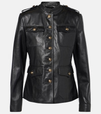 Nili Lotan’s elevated, contemporary designs combine luxury with everyday wearability. The Geraldine leather jacket features antique brass crest buttons, epaulettes, and patch pockets, offering a sophisticated utilitarian style. Product Details - Material: 100% leather - Care instructions: specialist clean - Made in Turkey - Designer color name: Black - Closure: button-down - Pockets: flap chest pockets - Item number: P01005919 Size & Fit - True to size - Cinched waist - Non-stretchy fabric - Falls to the hip - The model seen in the picture is 178cm-5'10" and wearing a size XS