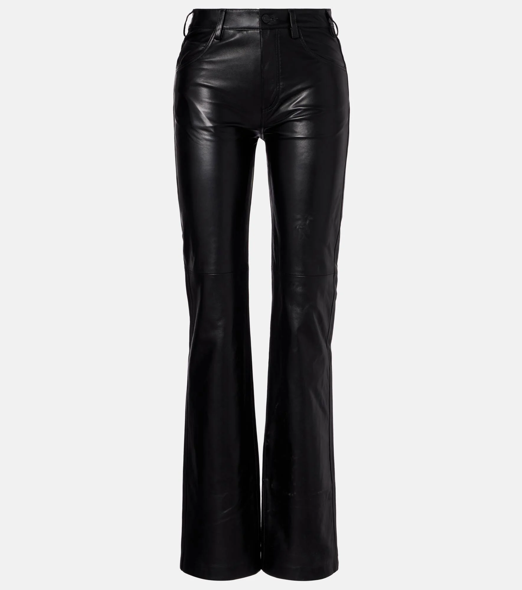 Invest in Nili Lotan's timeless wardrobe staples – where impeccable fit meets sophisticated design. The Joan pants are cut from black lambskin leather and have a chic bootcut silhouette. Product Details - Material: 100% lamb leather - Care instructions: specialist clean - Made in Turkey - Designer color name: Black - Item color: black - Lining: 97% polyester, 3% elastane - Pockets: five pockets - Closure: zip and button fastening - Belt loops - Item number: P01076347 Size & Fit - Fits small to size - we recommend trying one size larger - Non-stretchy fabric - Straight leg - High-waisted - The model seen in the picture is 178cm-5'10" and wearing a size US 6