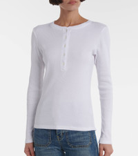 Product Details - Material: 100% cotton - Care instructions: machine wash cold - Made in the USA - Designer color name: White - Closure: button fastening - Item number: P01005915 Size & Fit - True to size - Fitted - Slightly stretchy fabric - Falls to the hip - The model seen in the picture is 178cm-5'10" and wearing a size XS