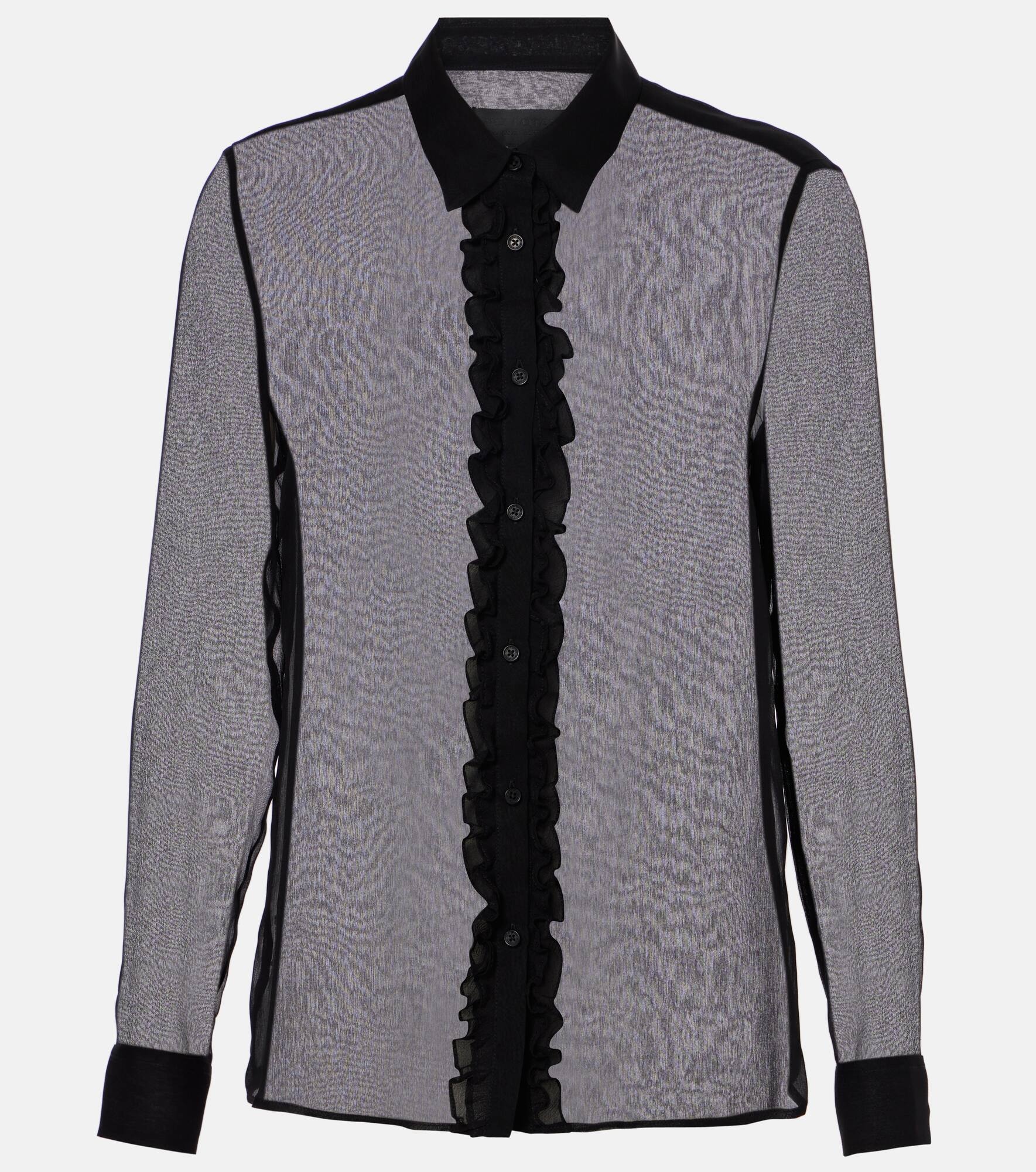 Product Details - Material: 100% silk - Care instructions: dry clean - Made in the USA - Designer color name: Black - Closure: button-down - Item number: P01032918 Size & Fit - True to size - Non-stretchy fabric - Falls to the hip - The model seen in the picture is 178cm-5'10" and wearing a size XS