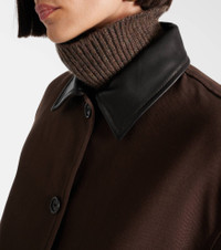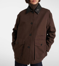 Invest in Nili Lotan's timeless wardrobe staples – where impeccable fit meets sophisticated tailoring. This cotton jacket features a leather-trimmed collar and front pockets. Product Details - Material: 100% cotton - Care instructions: specialist clean - Made in Portugal - Designer color name: Brown - Item color: brown - Details: 100% lamb leather - Lining: 100% viscose - Closure: buttoned front - Pockets: flap pockets, welt pocket - Item number: P01094123 Size & Fit - True to size - Dropped shoulders - Designed for a loose fit - Non-stretchy fabric - Falls below the hip - The model seen in the picture is 178cm-5'10" and wearing a size XS
