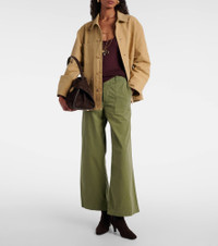 Invest in Nili Lotan's timeless wardrobe staples – where impeccable fit meets sophisticated tailoring. The Leon pants are cut from green-hued cotton twill into a wide-leg silhouette with a mid-rise waistline and two mitered patch pockets. Product Details - Material: 98% cotton, 2% elastane - Care instructions: machine wash cold - Made in the USA - Designer color name: Camo - Item color: green - Closure: concealed button placket - Pockets: patch pockets, back pockets - Belt loops - Item number: P01076240 Size & Fit - True to size - Non-stretchy fabric - Wide-leg - The model seen in the picture is 178cm-5'10" and wearing a size US 4