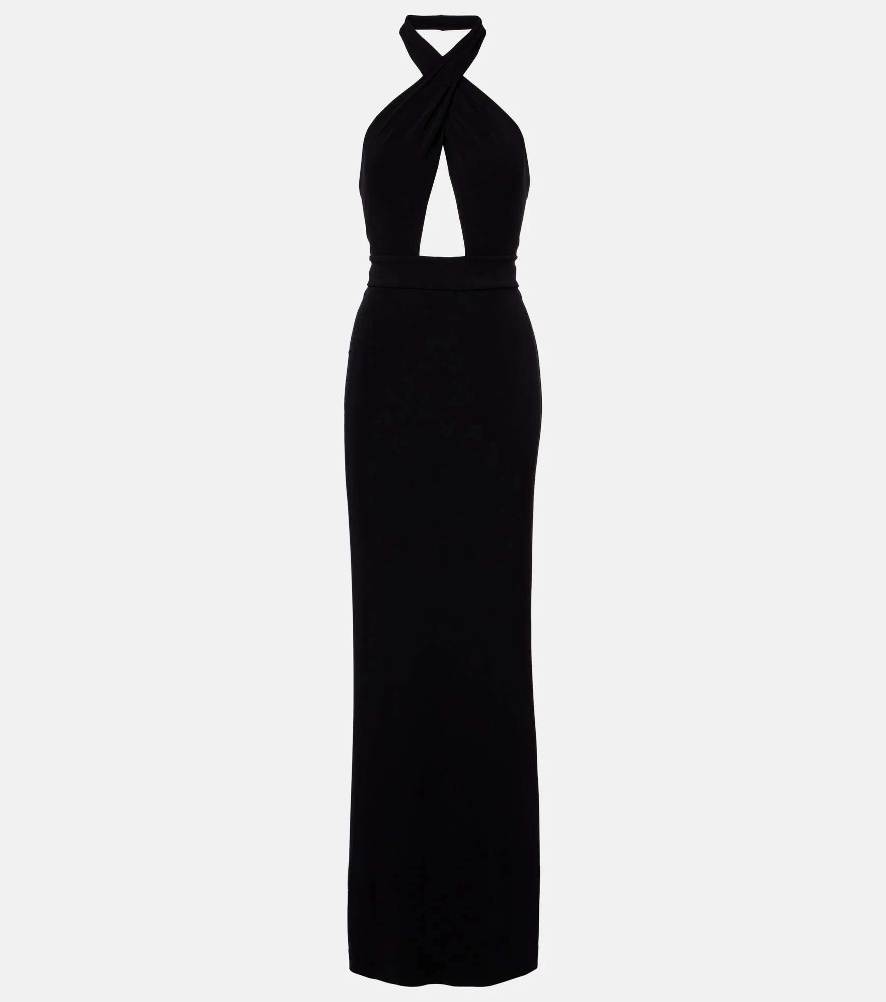 Invest in Nili Lotan's timeless wardrobe staples – where impeccable fit meets sophisticated tailoring. The Lita gown is made from fluid jersey, and its sculptural silhouette features a halterneck and a crossed front that creates a charming cutout. Product Details - Material: 95% viscose, 5% elastane - Care instructions: dry clean - Made in Portugal - Color: black - Designer color name: Black - Closure: concealed zipped back - Item number: P01124507